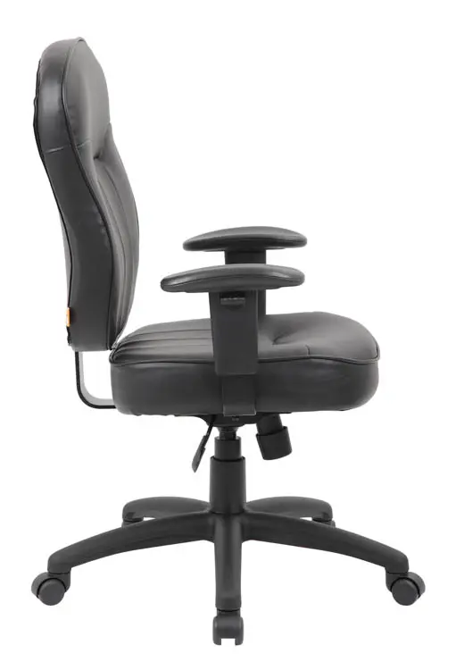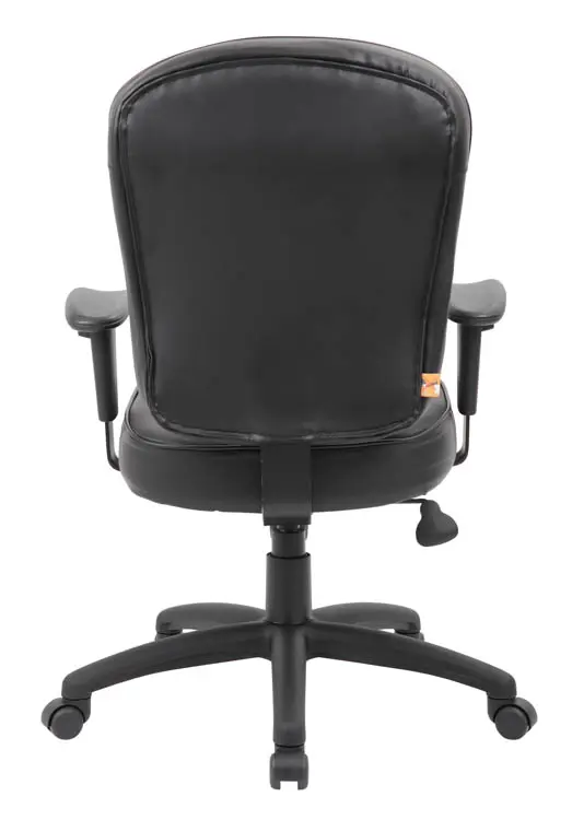 This mid back leather task chair with extra large seat and back cushions makes for a comfortable seat during extended periods of work.