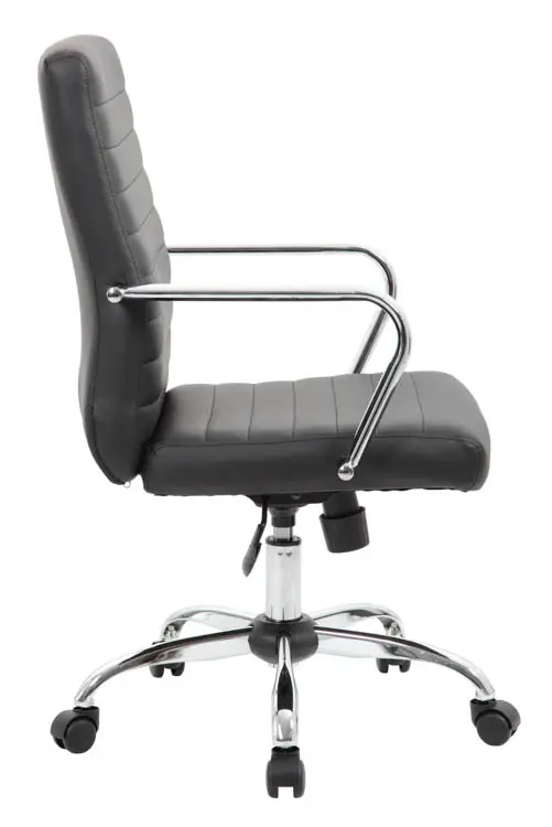 It also boasts a sturdy 25" chrome base with 2" nylon dual wheel castors for a smooth roll and has a weight limit of 275 lbs.