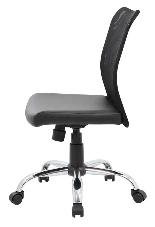 The chair itself is created with a mesh backing for ultra-breathability, while the seat is designed with a solid, classy black vinyl.