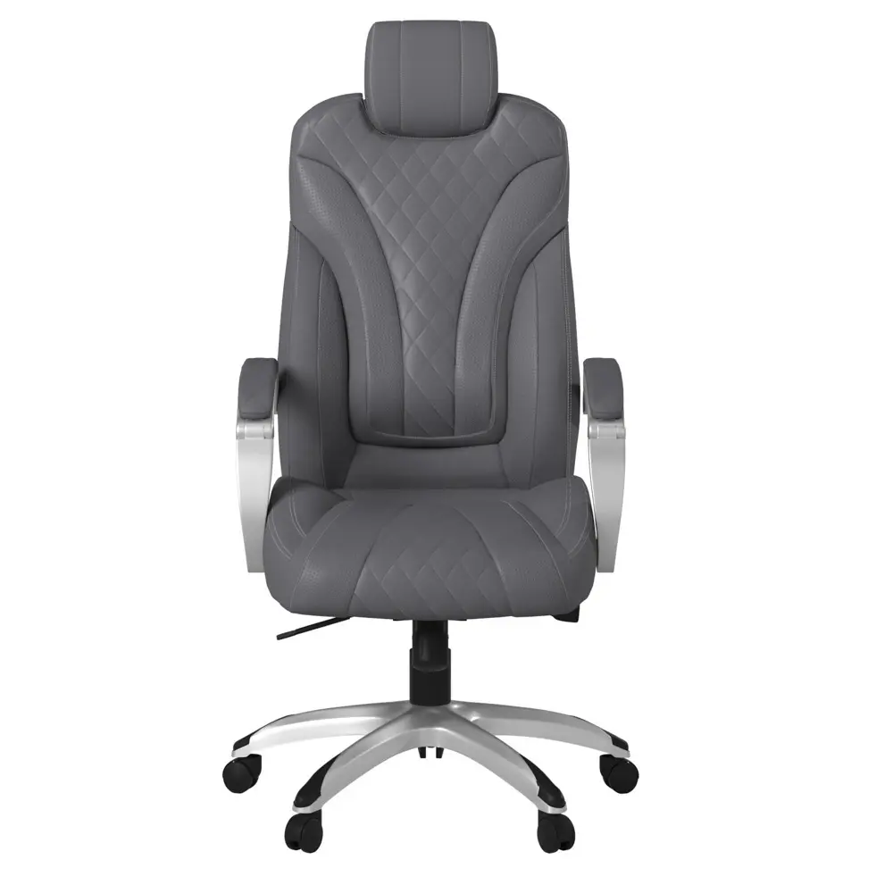 It features a designer stitched back cushion and pivoting hinge arms that allow the seat and back to move independently in tandem with the 2-to-1 synchro tilt mechanism and adjustable tilt tension control.