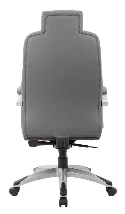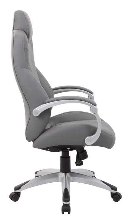 This hinged arm executive chair is beautifully upholstered in Black / Gray Caressoft upholstery for the kind of comfort and durability required for a long day at the office.