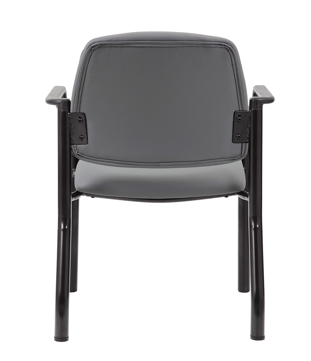 The guest chair is designed with a strong and easy to clean antimicrobial black vinyl material that lends a professional appearance along with a sturdy four leg tubular black steel base that offers coziness and strength.