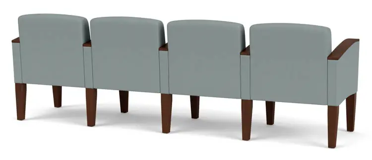 The Belmont 4 seats with cetner arms, with its generously sized proportions, heavy-duty construction and fully-upholstered seat, back, and arms will give your space a graceful yet sturdy look.