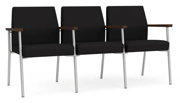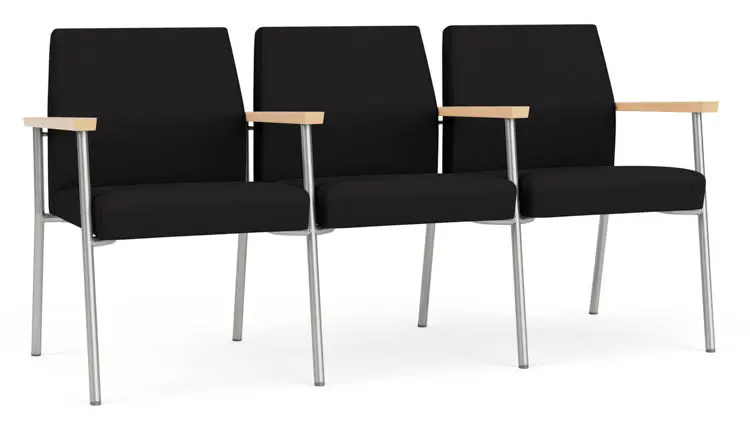 The Mystic 3 seater with center arms with its refined, tapered back and striking geometric arm design will give your space a clean, contemporary look.