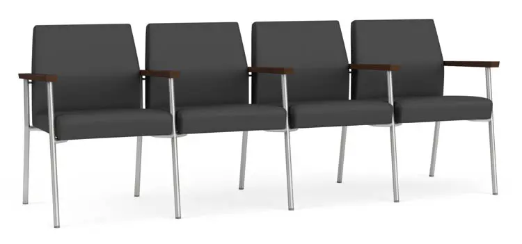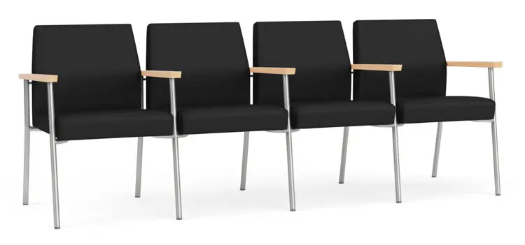 The Mystic 4 seater with center arms with its refined, tapered back and striking geometric arm design will give your space a clean, contemporary look.
