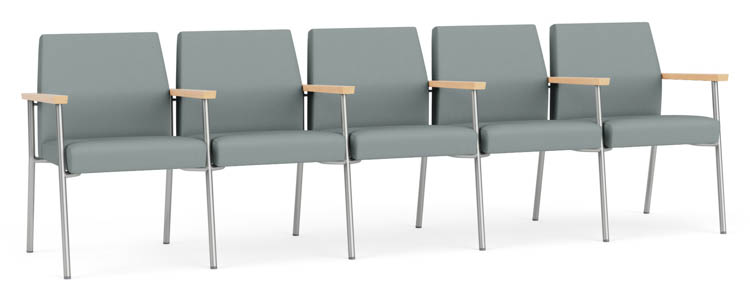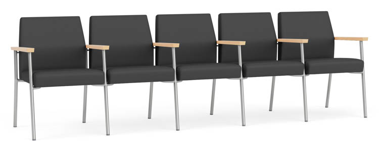 The Mystic 5 seater with center arms with its refined, tapered back and striking geometric arm design will give your space a clean, contemporary look.