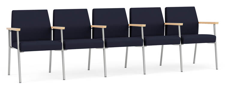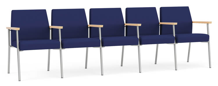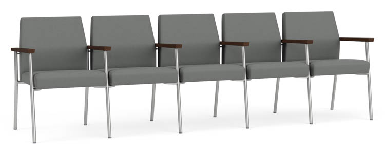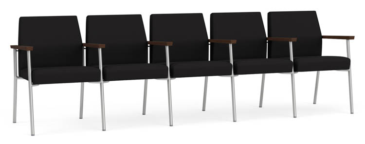 The Mystic 5 seater with center arms with its refined, tapered back and striking geometric arm design will give your space a clean, contemporary look.