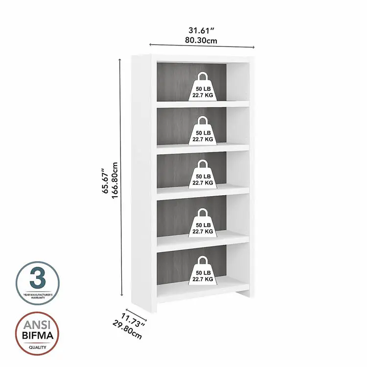 Bush Business Furniture, the 5 Shelf Bookcase meets ANSI/BIFMA quality standards for safety and performance.