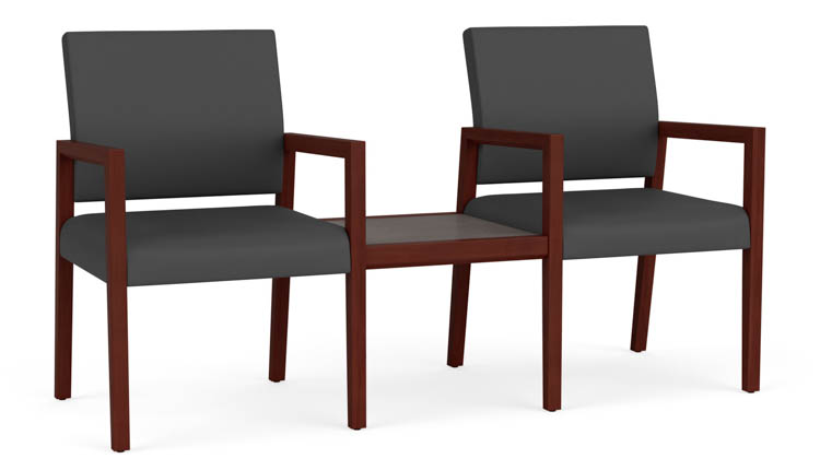 • Available in 5 Polyurethane upholstery colors, and Walnut or Mahogany finish on frame, plus Earthen Twill or Graphite Twill Laminate Table