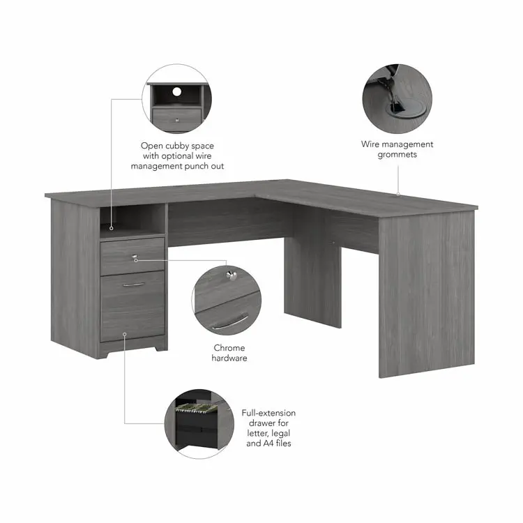 Create a stylish, functional and organized home office with the Bush Furniture Cabot 60"W L-Shaped Computer Desk with Drawers.