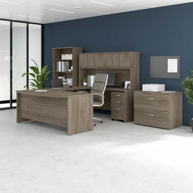 Give your office the workspace you need and the style you deserve with this Bush Business Furniture Studio C U-Shaped Desk, Hutch, Bookcase and File Cabinets.