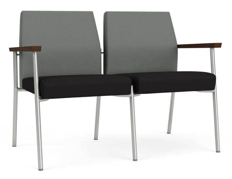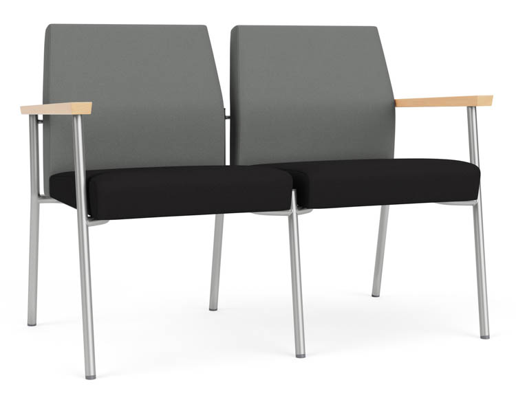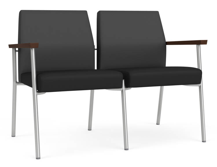 Features include sturdy steel construction, solid hardwood armrests with durable lacquer finish, and a comfortable Matrex seat support system.