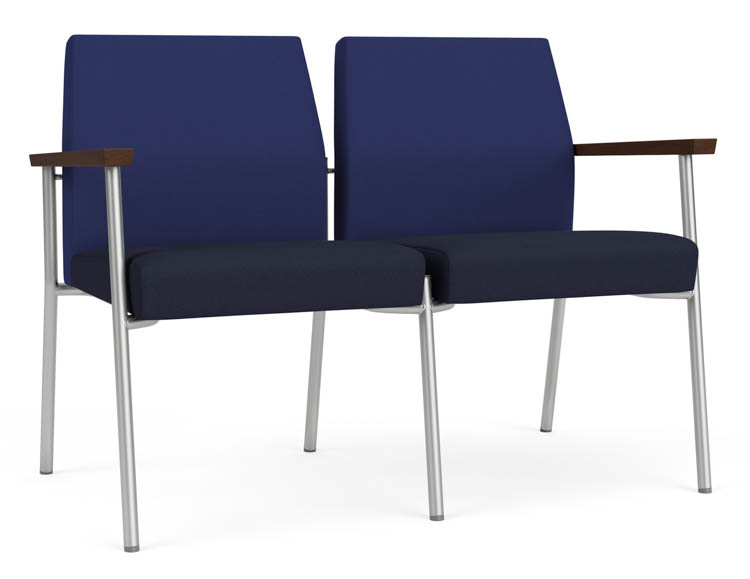 Cobalt Open House Fabric / Navy Open House Fabric / Silver Finish / Riftwood Walnut Arm Cap