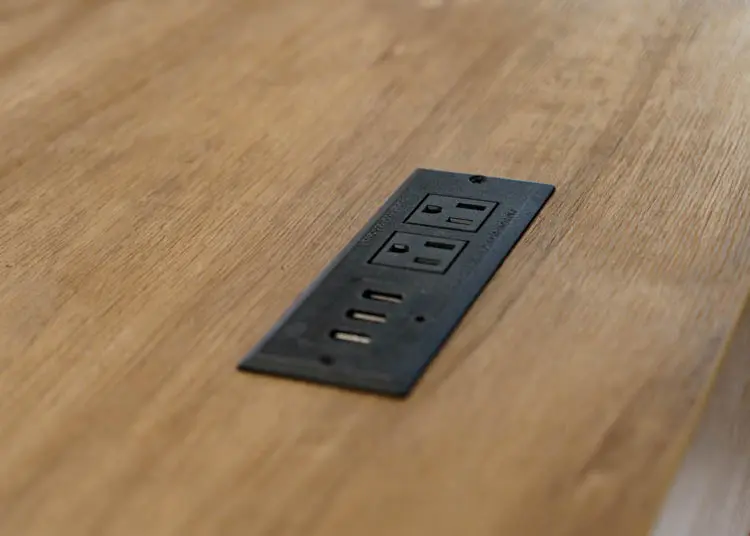 Power center with AC power outlets and USB 2.0 ports.