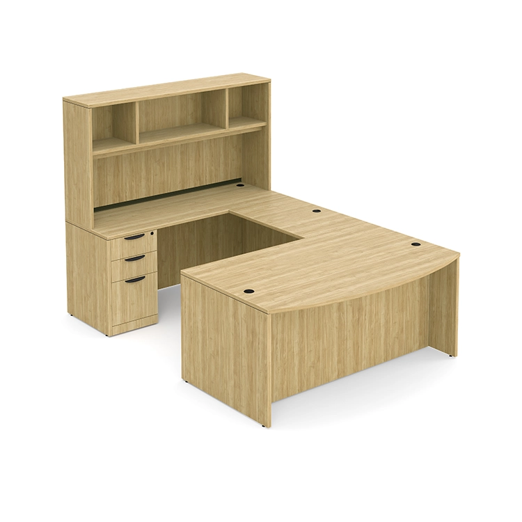 PL Series Bow Front Double Pedestal U-Shaped Desk with open hutch features a durable laminate finish.