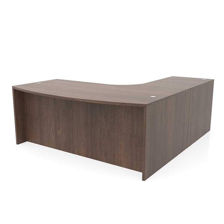 PL Series Curved Corner Bow Front L Shaped Desk features a durable laminate finish & 3mm edge banding.