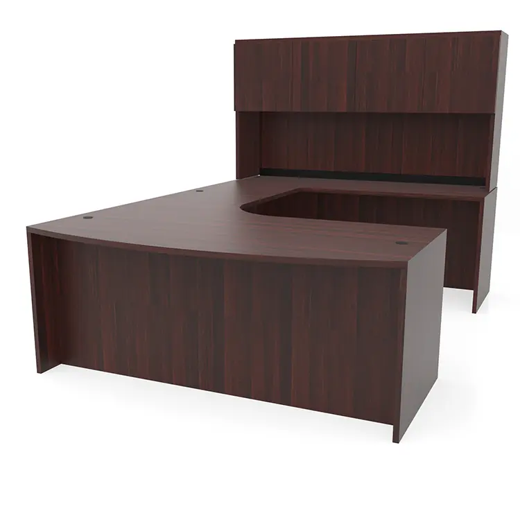 PL Series Curved Corner Bow Front U-Shaped Desk with Hutch features a durable laminate finish & 3mm edge banding.