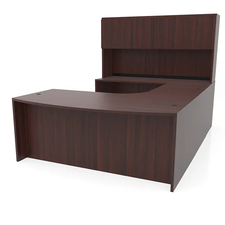 PL Series Curved Corner Bow Front U-Shaped Desk with Hutch features a durable laminate finish & 3mm edge banding.