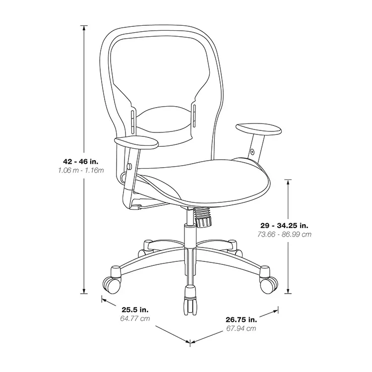 • Breathable Mesh back and Deluxe Mesh Seat with adjustable lumbar support