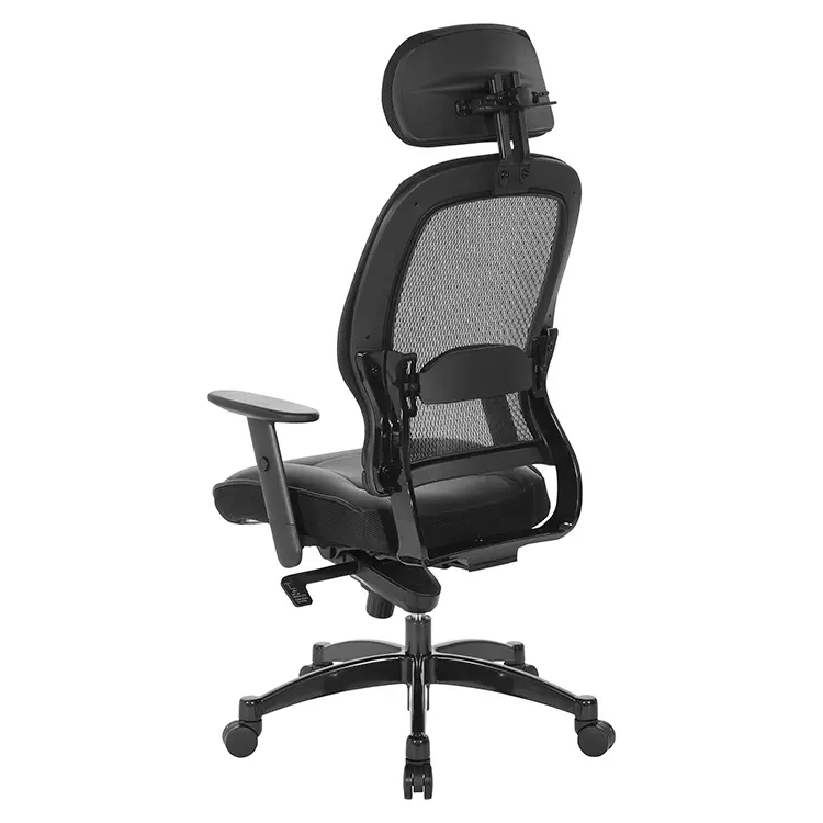 • Breathable mesh back and Leather Seat with adjustable lumbar support