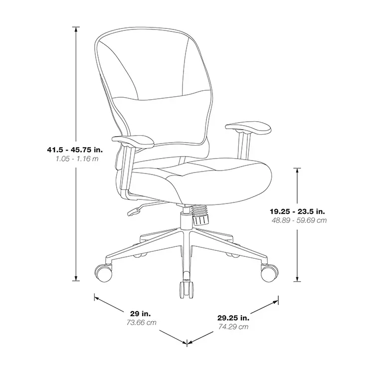 A one touch pressurized pneumatic seating adjustments allows you to elevate to the perfect height, while the 2-to-1 synchro tilt control, with adjustable tilt tension helps to personalize this chair to your particular needs.