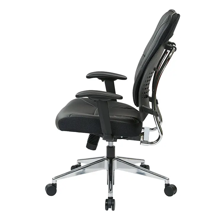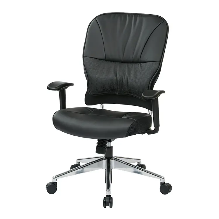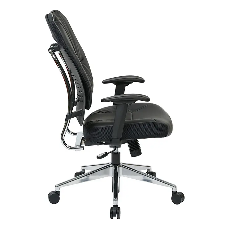Unsurpassed up-to-the-minute design arrives in the form of this black bonded leather manager’s chair with polished aluminum base.