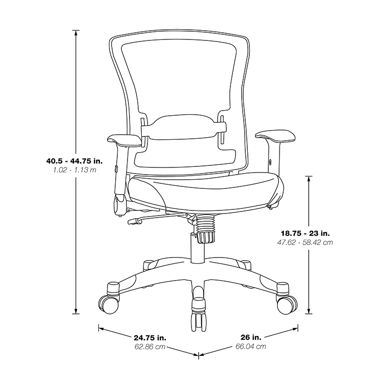 • Breathable back mesh with adjustable lumbar support