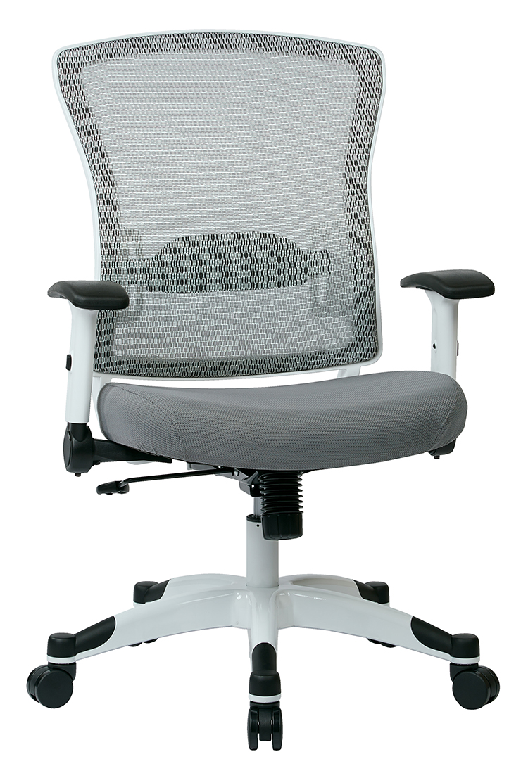 Cutting edge seating arrives in the new white frame mid back office chair with mesh back and padded mesh seat.
