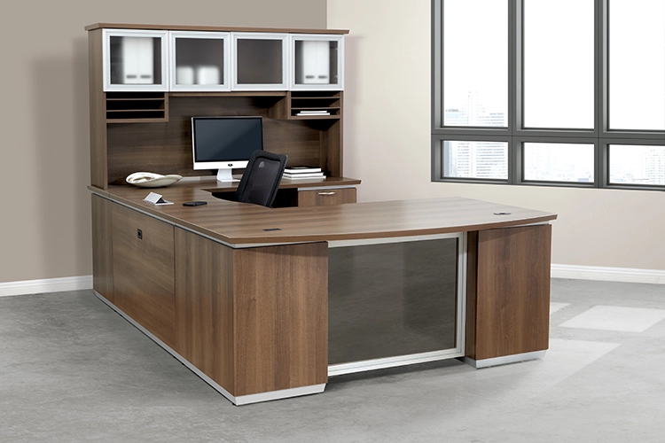 Bow Front U-Desk has the signature frosted glass front modesty panel.