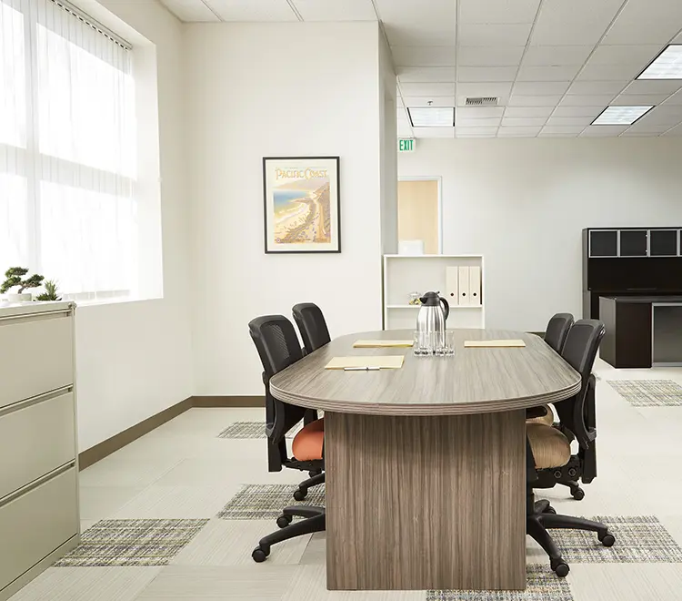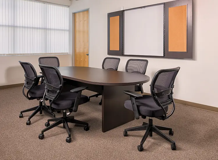 The Neenah racetrack shaped conference table is the perfect centerpiece for any modern office space, offering style and function in one elegant package.