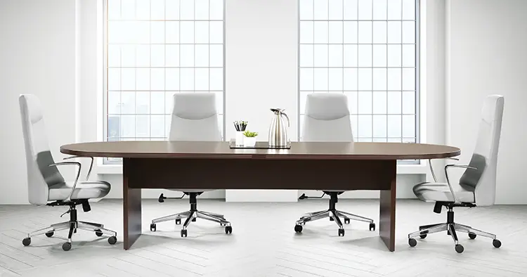 With its racetrack-shaped design, this conference table adds a touch of sophistication and elegance to any conference room or meeting space.