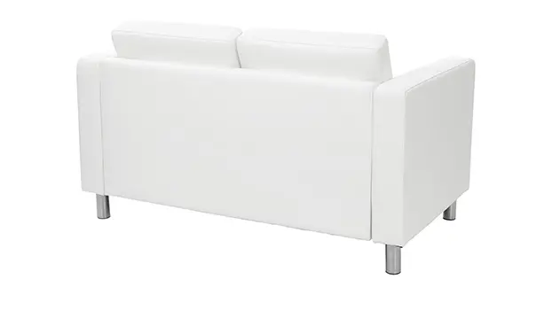 The chrome leg finishes of the Atlantic Loveseat not only prop it up, but also give it a chic display.