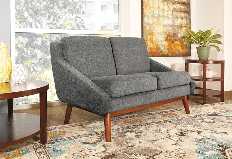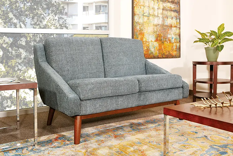 Mid Century modern looking furniture with solid wood legs stained to a coffe finish.