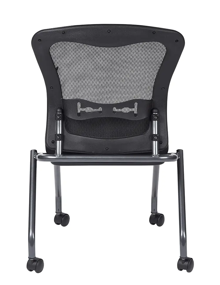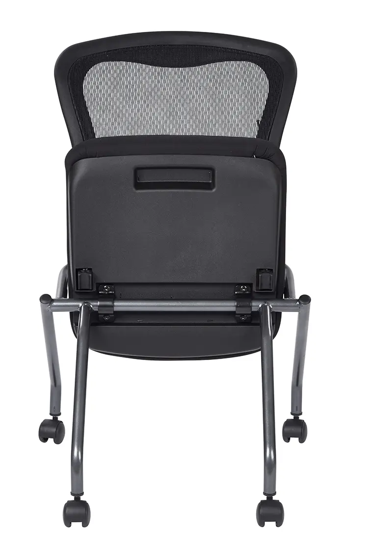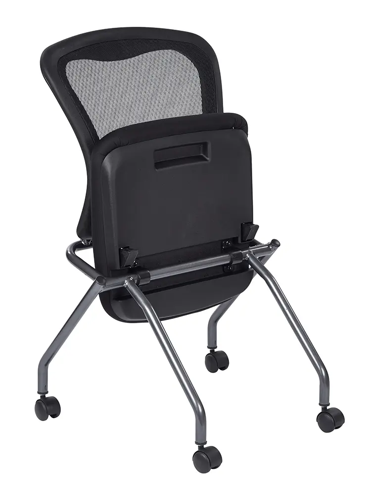 • Nesting chairs are designed to fold up horizontally for nesting, saving precious office space when not in use