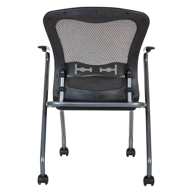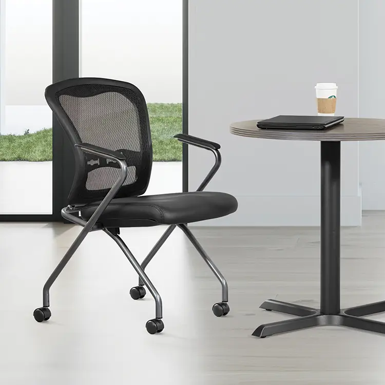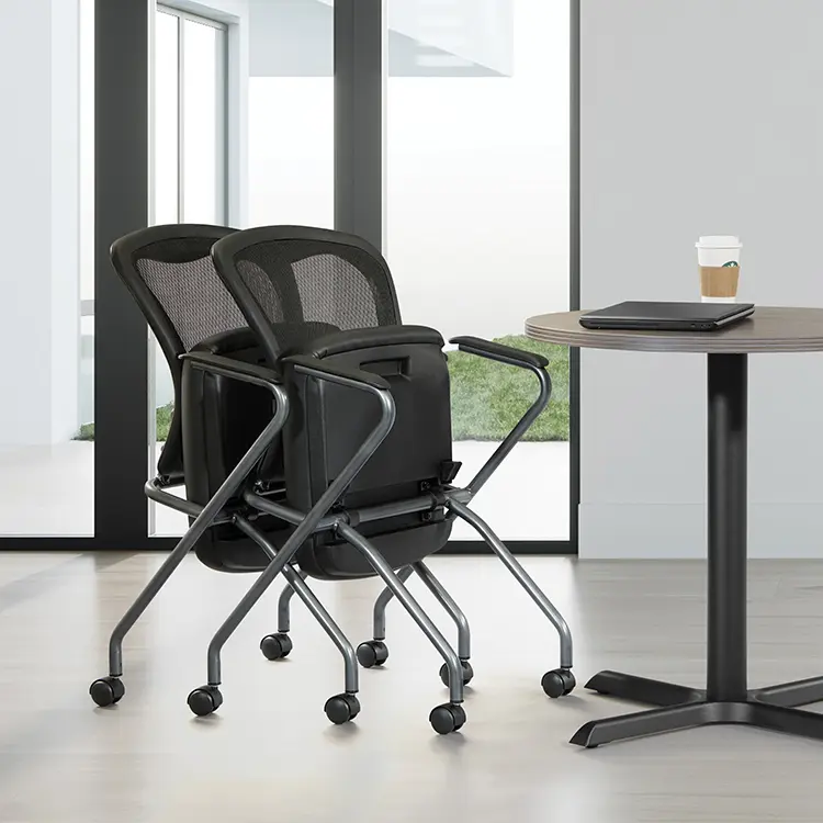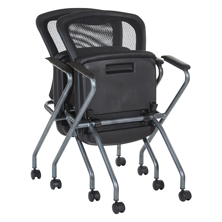 • Nesting chairs are designed to fold up horizontally for nesting, saving precious office space when not in use
