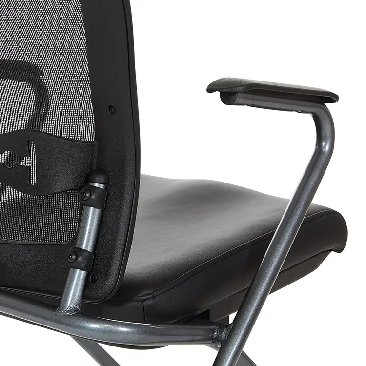 Crafted with a sturdy Titanium finish, these chairs are built to last. The breathable back with built-in lumbar support ensures that your employees or clients stay comfortable during long meetings.