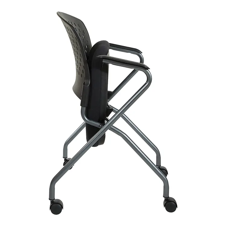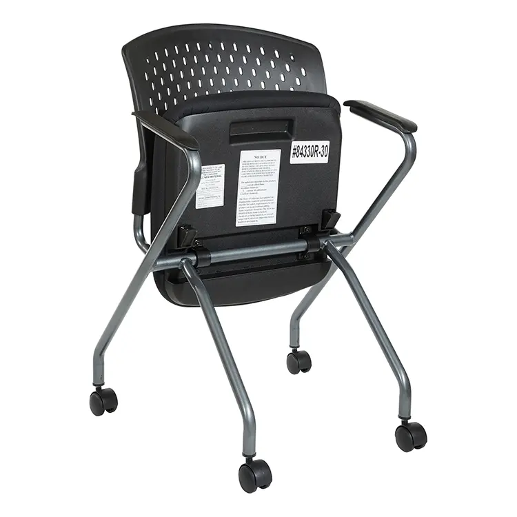 • Nesting chairs are designed to fold up horizontally for nesting, saving precious office space when not in use