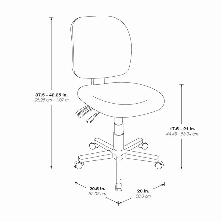 Introducing our Armless High Back Ergonomic Chair - the perfect addition to any workspace. With its thick padded contour molded seat and back, this chair provides unmatched comfort and support, all day long. And with built-in lumbar support, you can say goodbye to back pain and discomfort.