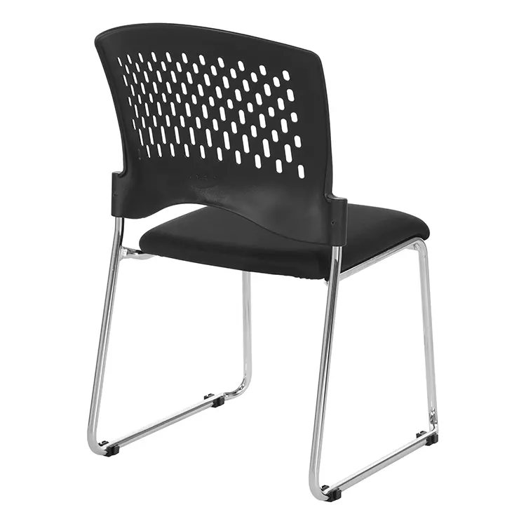 Crafted with a sturdy chrome metal frame, these chairs are built to last. The ventilated plastic back allows for air flow in the chair, while the Black FreeFlex padded fabric seats provide the utmost in seating comfort.