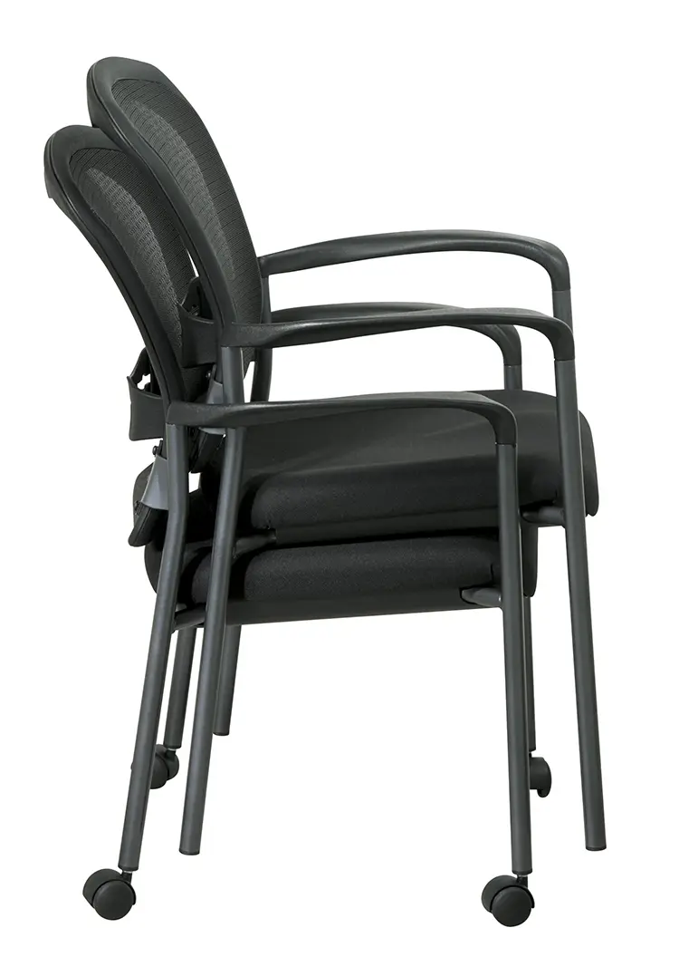 Crafted with a sturdy Titanium colored metal frame, these chairs are built to last. The mesh back allows for air flow in the chair, while the Black FreeFlex padded fabric seats provide the utmost in seating comfort.