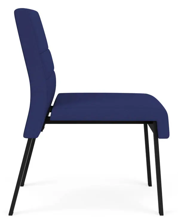 • Heavy duty steel armless guest chair with upholstered seat and back with generous cleanout space between them