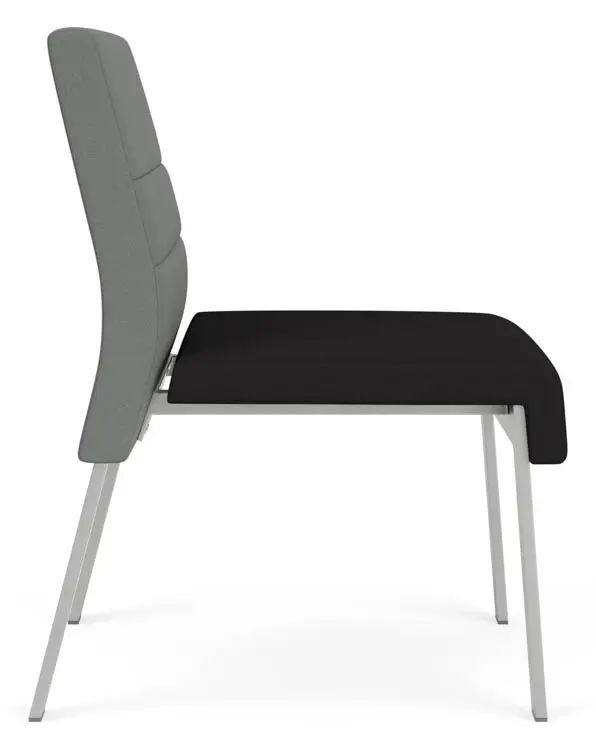 • Heavy duty steel armless guest chair with upholstered seat and back with generous cleanout space between them