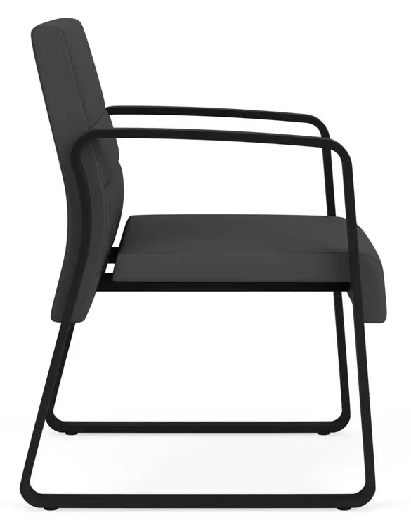 The Waterfall guest chair with sled base, with its soothing yet powerful styling, sloped arm design, and upholstered seat and back cushions will give your space an inviting, welcoming air.