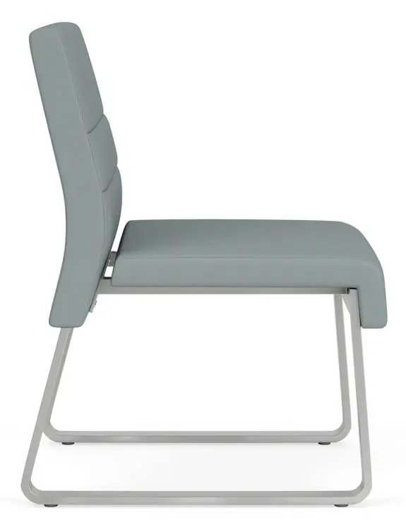The Waterfall armless guest chair with sled base, with its soothing yet powerful styling and upholstered seat and back cushions will give your space an inviting, welcoming air.