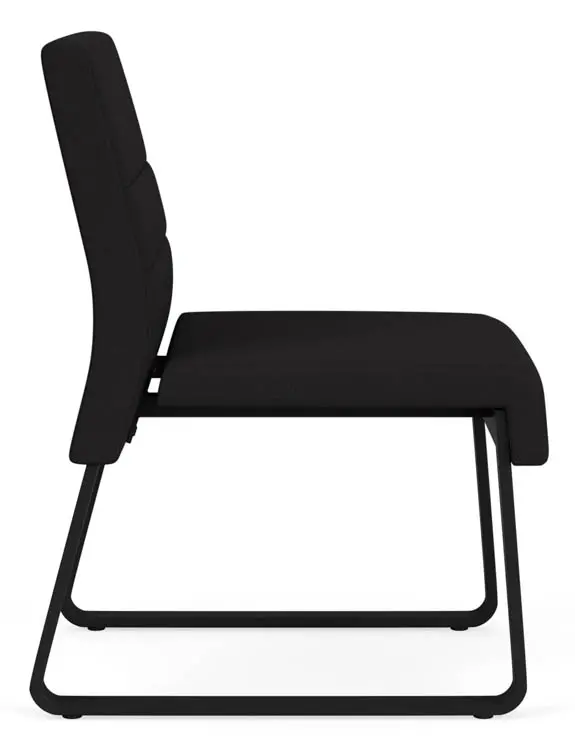 • Heavy duty steel armless guest chair with upholstered seat and back with generous cleanout space between them