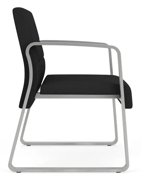 The Waterfall oversize guest chair with sled base, with its soothing yet powerful styling, sloped arm design, and upholstered seat and back cushions will give your space an inviting, welcoming air.