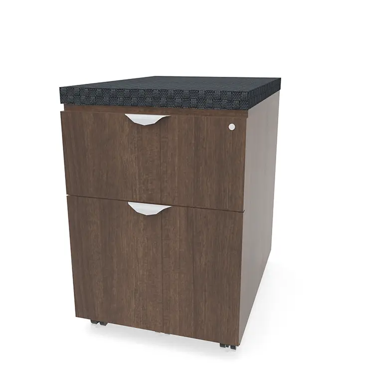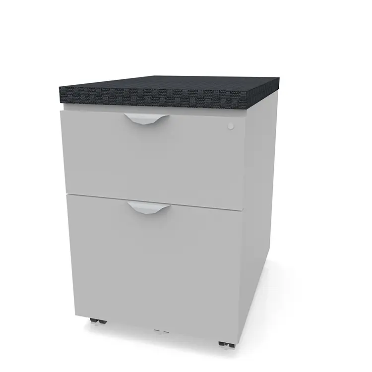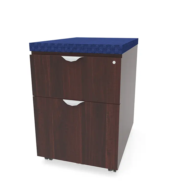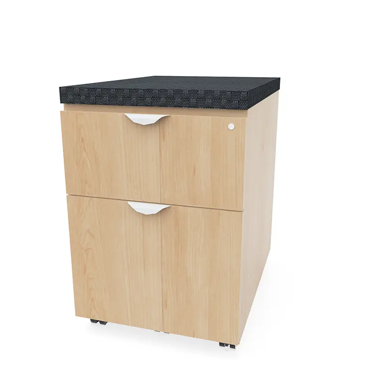 2 drawer box / file mobile pedestal with cushion seat top has a durable laminate finish in addition to the comfortable top.
