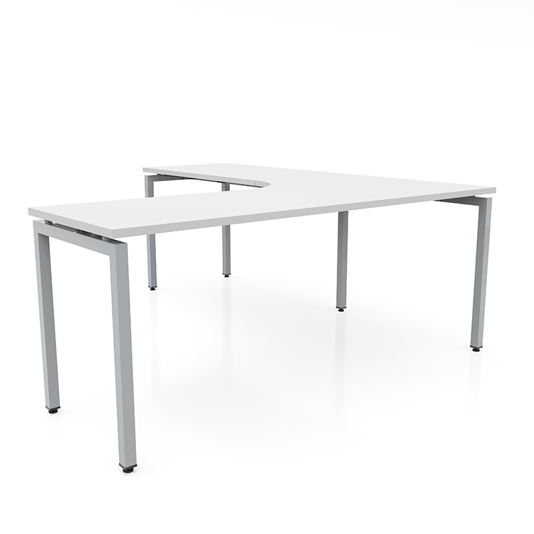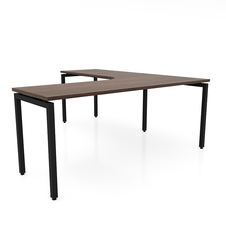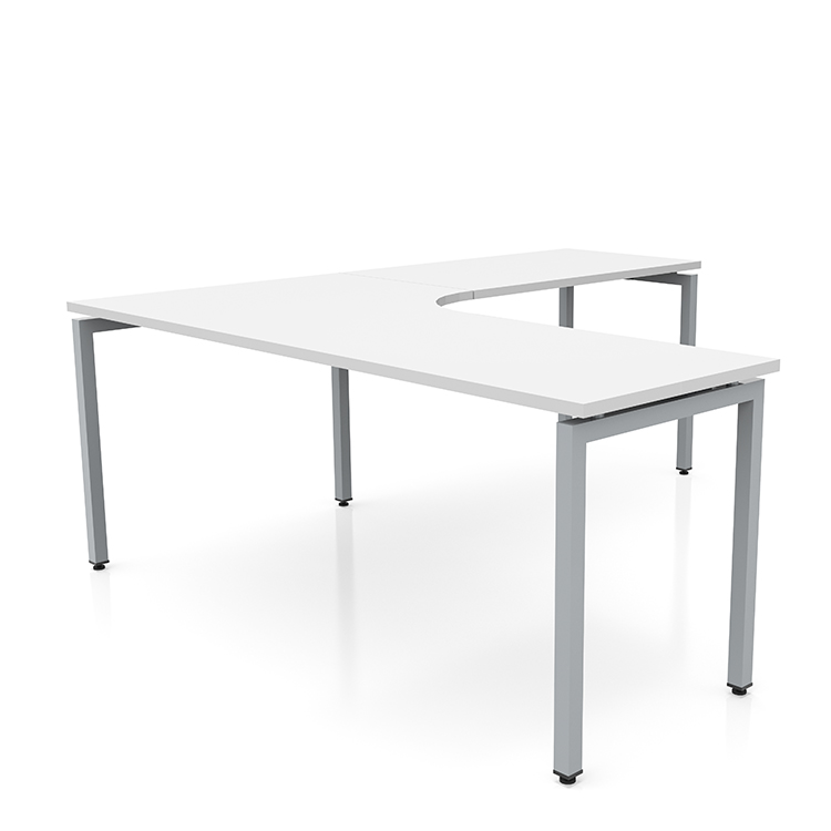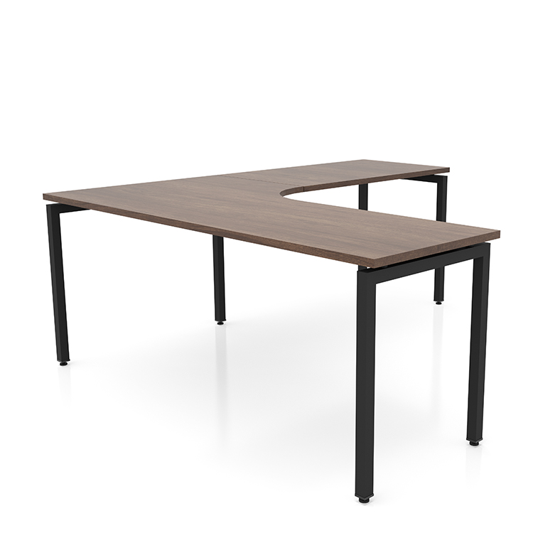 Curved inside corner allows user to comfortably pull up and work into the corner of the desk.