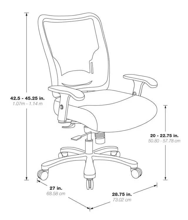 Overall Dimensions: 28.75" W x 27" D x 42.5-45.5" H