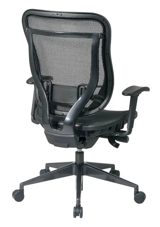 Breathable Mesh Back and Seat Executive Chair with Adjustable Arms and Lumbar, Seat Slider, and Industrial Steel Finish Angled Base.